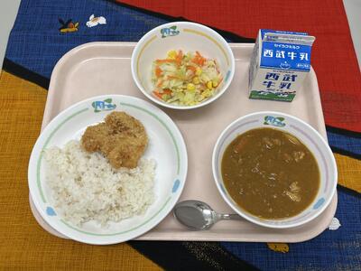 【きょうの給食】10月3日(金) 投稿: 松井小承認者 (14:51) ・ごはん ・カツカレー ・コールスローサラダ ・牛乳 明日は、運動会です。今まで頑張ってきたことが精一杯発揮できる ように「カツカレー」にしました。十分な睡眠をとって、朝ご飯しっかり食べて 明日の運動会、頑張ってください。