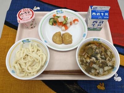 【きょうの給食】11月19日(水) 投稿: 松井小承認者 (11/19) ・肉汁うどん ・みそポテト ・カリポリサラダ ・いちごヨーグルト ・牛乳 今日は、秩父地方の郷土料理「みそポテト」です。ほくほくのじゃが芋に甘辛 のみそだれを絡めました。簡単にできるのでご家庭でも作ってみて下さい。