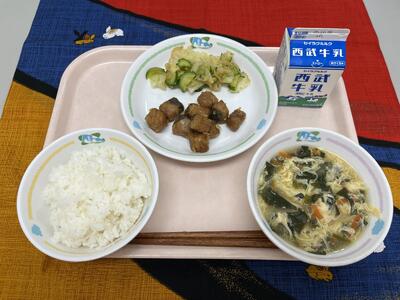 【きょうの給食】11月20日(木) 投稿: 松井小承認者 (13:33) ・ごはん ・カツオのピリットジャン ・キャベツときゅうりのかくやあえ ・かきたま汁 ・牛乳 今日は、初挑戦メニューの‟カツオのピリットジャン”です。パイン缶と豆板醤で甘さの中に ピリッと辛みがくるたれを揚げたカツオに絡めました。骨もないので、食べやすかったようです。