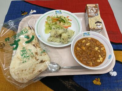 【きょうの給食】12月15日(月) 投稿: 松井小承認者 (13:48) ・ナン ・ジャーマンポテト ・フレンチサラダ ・ポークビーンズ ・コーヒーミルク 今日は、ポークビーンズです。「畑の肉」と言われるほどたんぱく質豊富な大豆を トマト味で煮込みました。煮豆は苦手な子も、これなら結構食べてくれます。 栄養豊富な大豆をご家庭でもぜひ、食べてください。