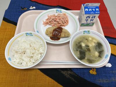 【きょうの給食】1月28日(水) 投稿: 松井小承認者 (13:31) ・麦入りごはん ・アジのスパイシー揚げ ・人参のごまマヨ和え ・大根のみそ汁 ・牛乳 今日は、とことこオーガニックの大根をみそ汁に使いました。人参については、収穫量が足りなかったので 有機農業を試している方の人参を使い、ごまマヨ和えにしました。子どもたちに有機農業について、簡単に 話ましたら、「だからおいしいんだね」と言われました。うれしかったです。😂