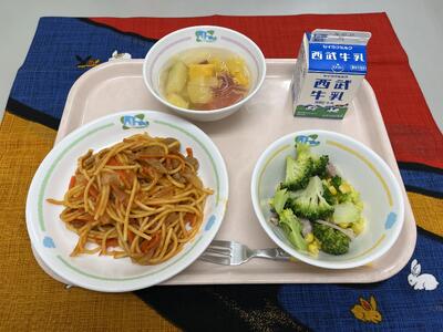 【きょうの給食】3月13日(金) 投稿: 松井小承認者 (13:38) ・スパゲティナポリタン ・ブロッコリーのサラダ ・シュワシュワフルーツポンチ ・牛乳 今日の一番人気は「シュワシュワフルーツポンチ」です。たくさんのフルーツが 入っていて、さらにサイダーのシュワシュワ感がとてもおいしいです。