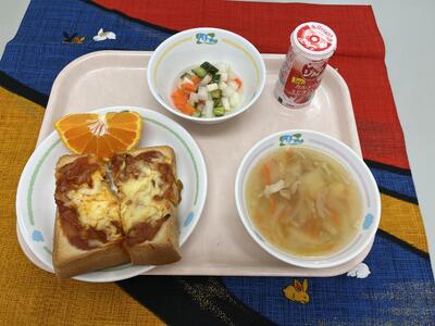 【きょうの給食】3月18日(水) 投稿: 松井小承認者 (13:34) ・ピザトースト ・カリポリサラダ ・コンソメスープ ・不知火 ・飲むヨーグルト 今日も6年生が考えた「食べて笑顔☆トーストランチ」です。テーマどおりで みんな笑顔で食べていました。6年生は、最後の給食まであと3回ですね。