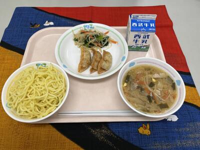 【きょうの給食】3月19日(木) 投稿: 松井小承認者 (13:44) ・味噌ラーメン ・揚げ餃子 ・春雨サラダ ・牛乳 今日の献立も6年生が考えました。テーマは「味噌ラーメン 揚げ餃子セット」です。 そのものズバリのテーマですね。味噌ラーメンの大豆もやしがいいアクセントになって、 おいしかったです。