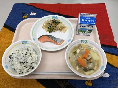 【きょうの給食】4月21日(火) 投稿: 松井小承認者 (13:32) ・わかめごはん ・銀鮭の塩焼き ・納豆和え ・豚汁 ・牛乳 魚料理はあまり人気がありません。でも、鮭だけは好きな子が多いようです。今日は塩こうじで下味をつけました。 他の魚も食べやすく、おいしくなるよう試行錯誤しながら頑張ります。魚を好きになる子が増えますように。